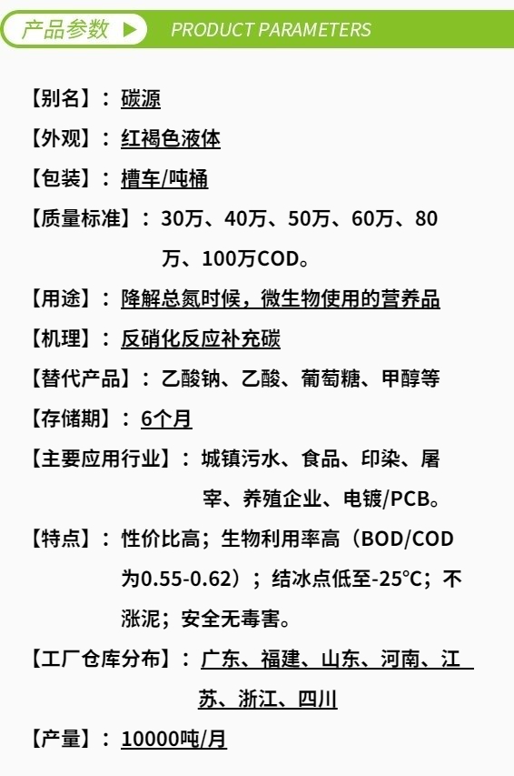 2.針對反硝化細菌專一定制,性價比普遍優于甲醇、乙醇、淀粉、葡萄糖、乙酸及乙酸鈉等傳統碳源;